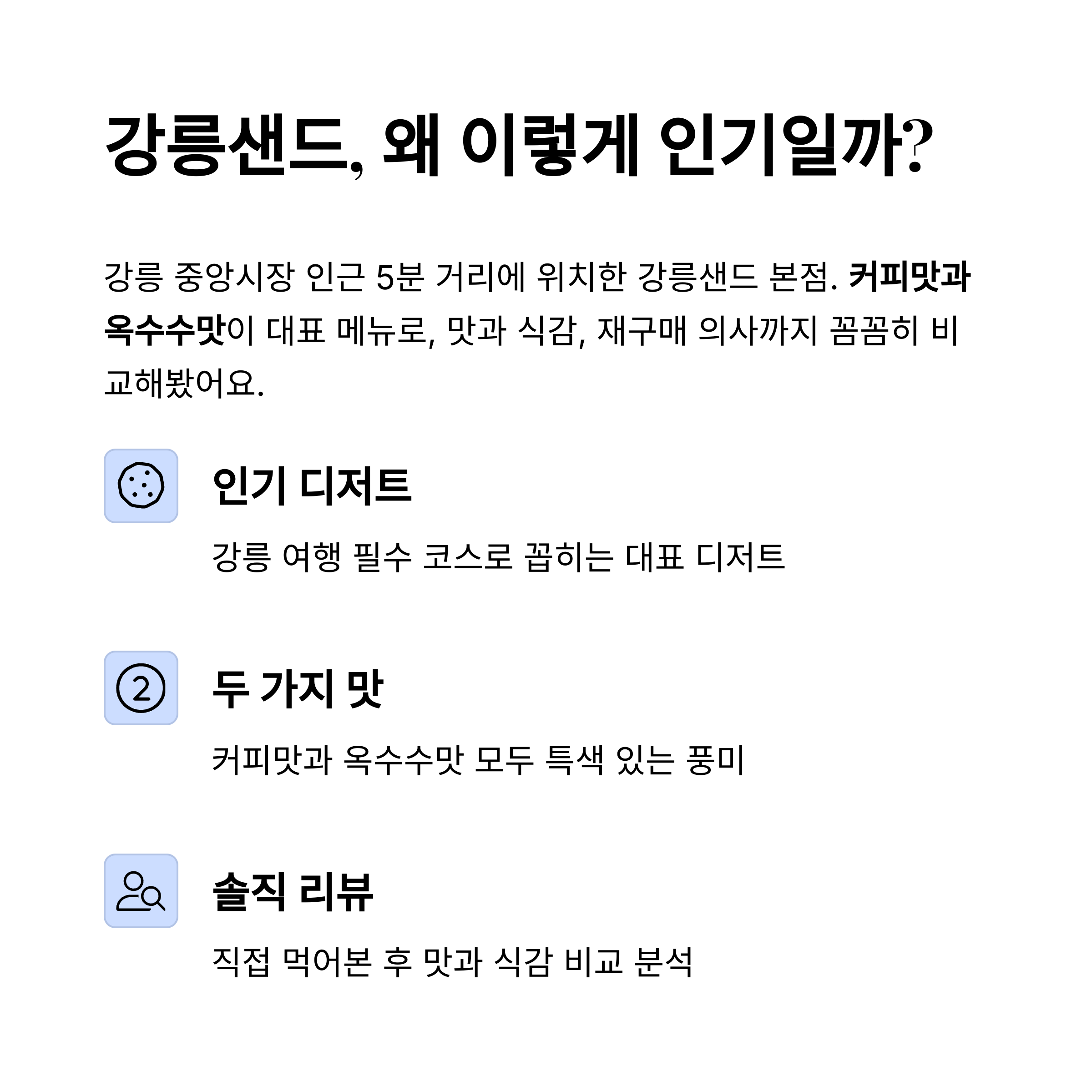 강릉 여행 중 가장 많이 추천받는 디저트 중 하나가 바로 **‘강릉샌드’**입니다.