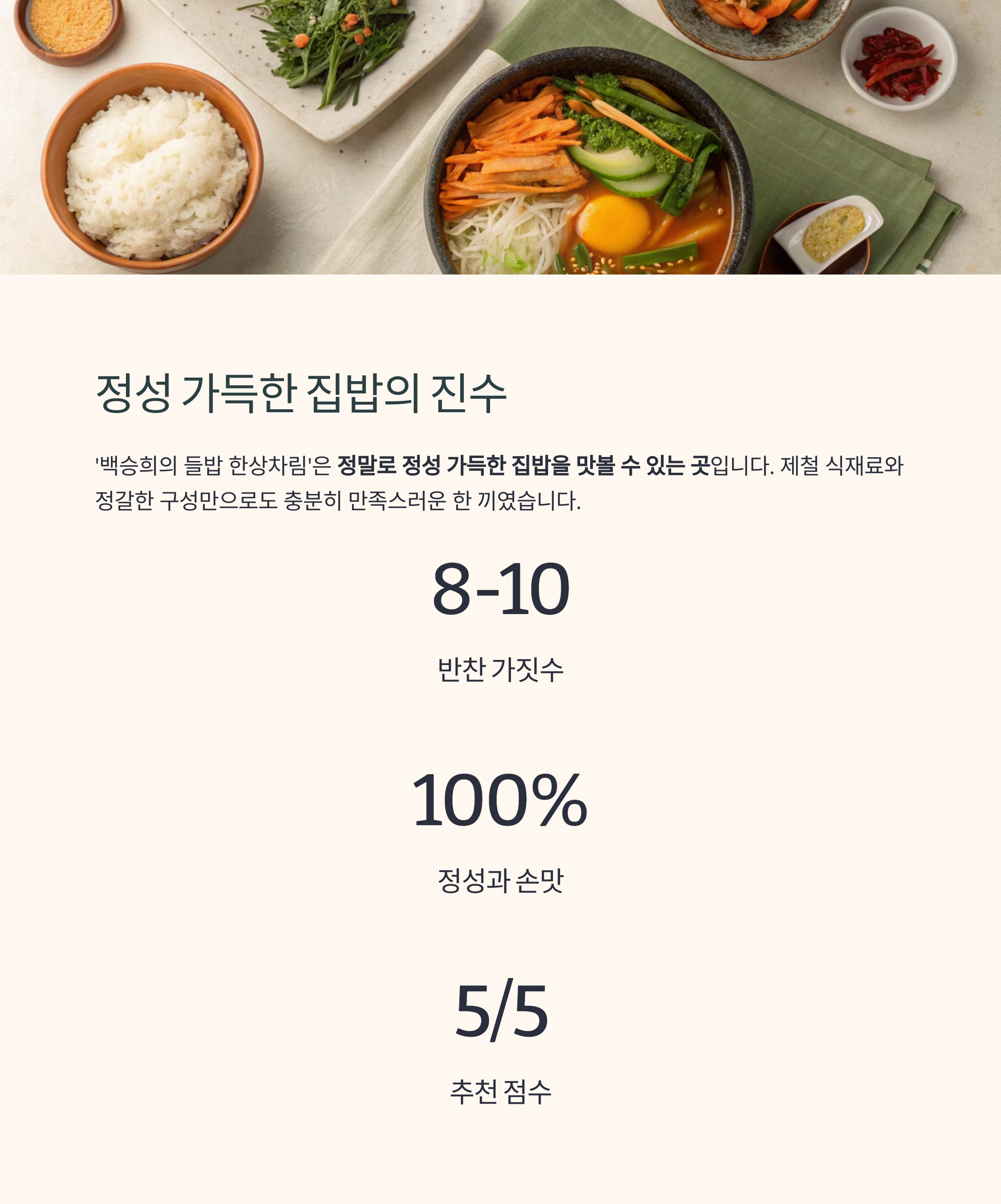 ‘밥 한 그릇’이 아니라 ‘마음이 담긴 한 상’을 대접받는 느낌이 들었어요.
