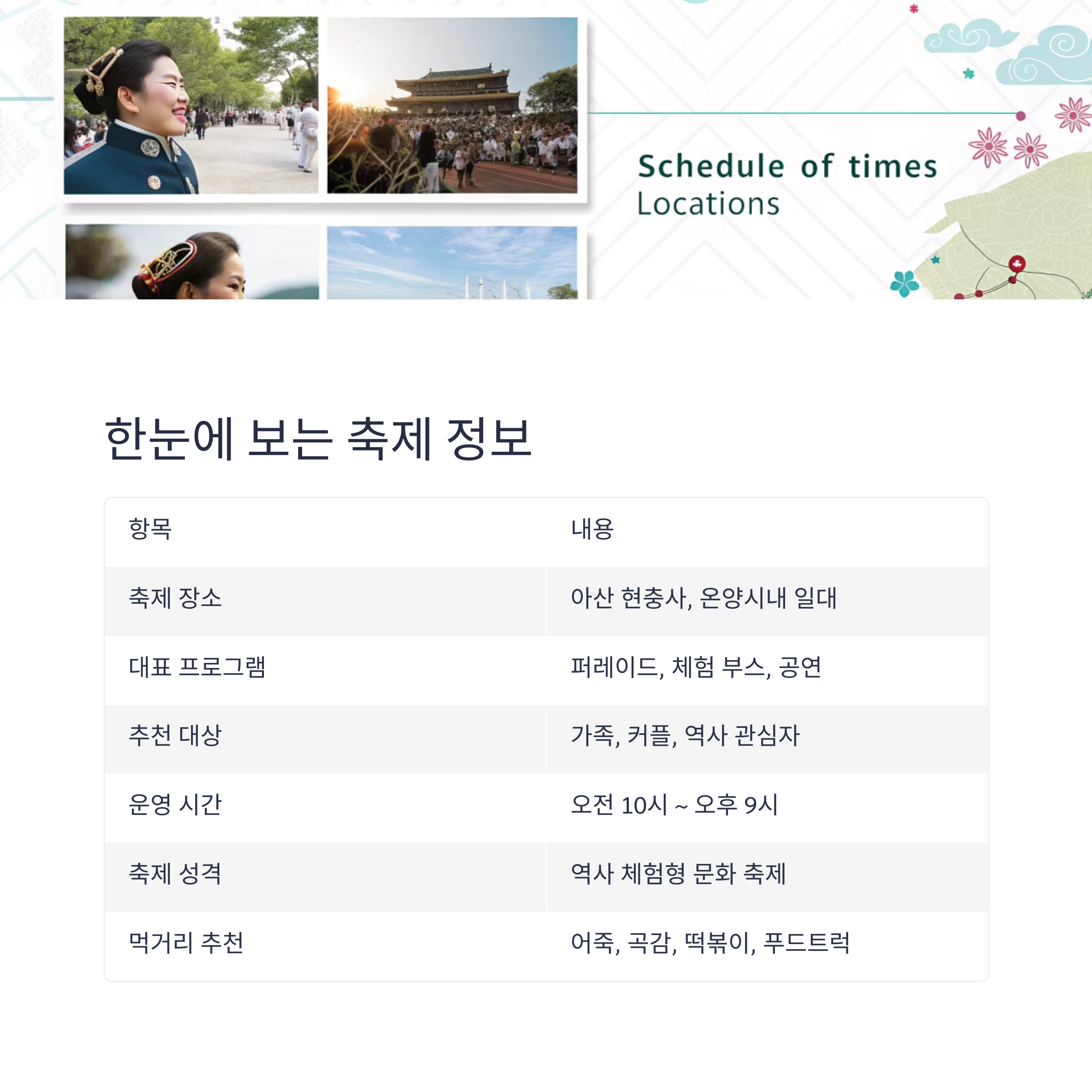 | 축제 장소 | 아산 현충사, 온양시내 일대 |