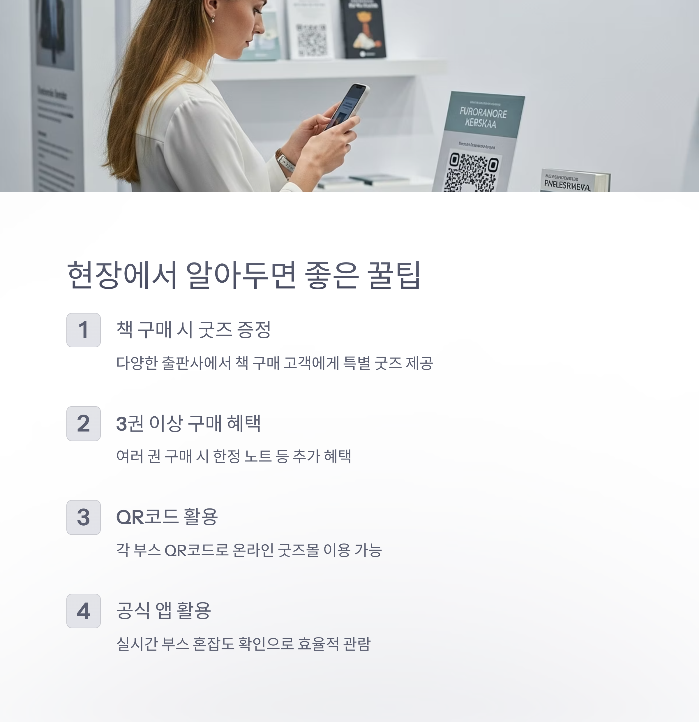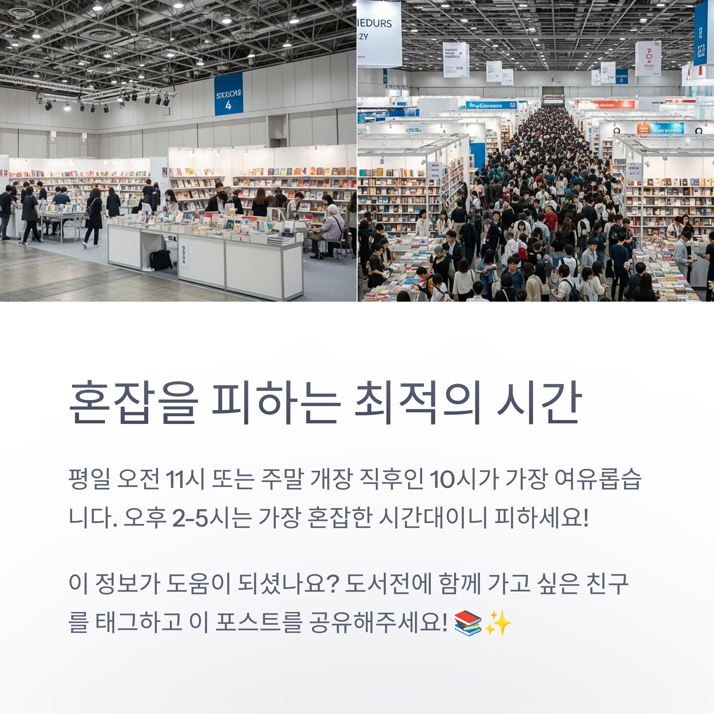 - 도서전 공식 앱을 활용하면 실시간 부스 혼잡도를 확인할 수 있어 유용합니다.