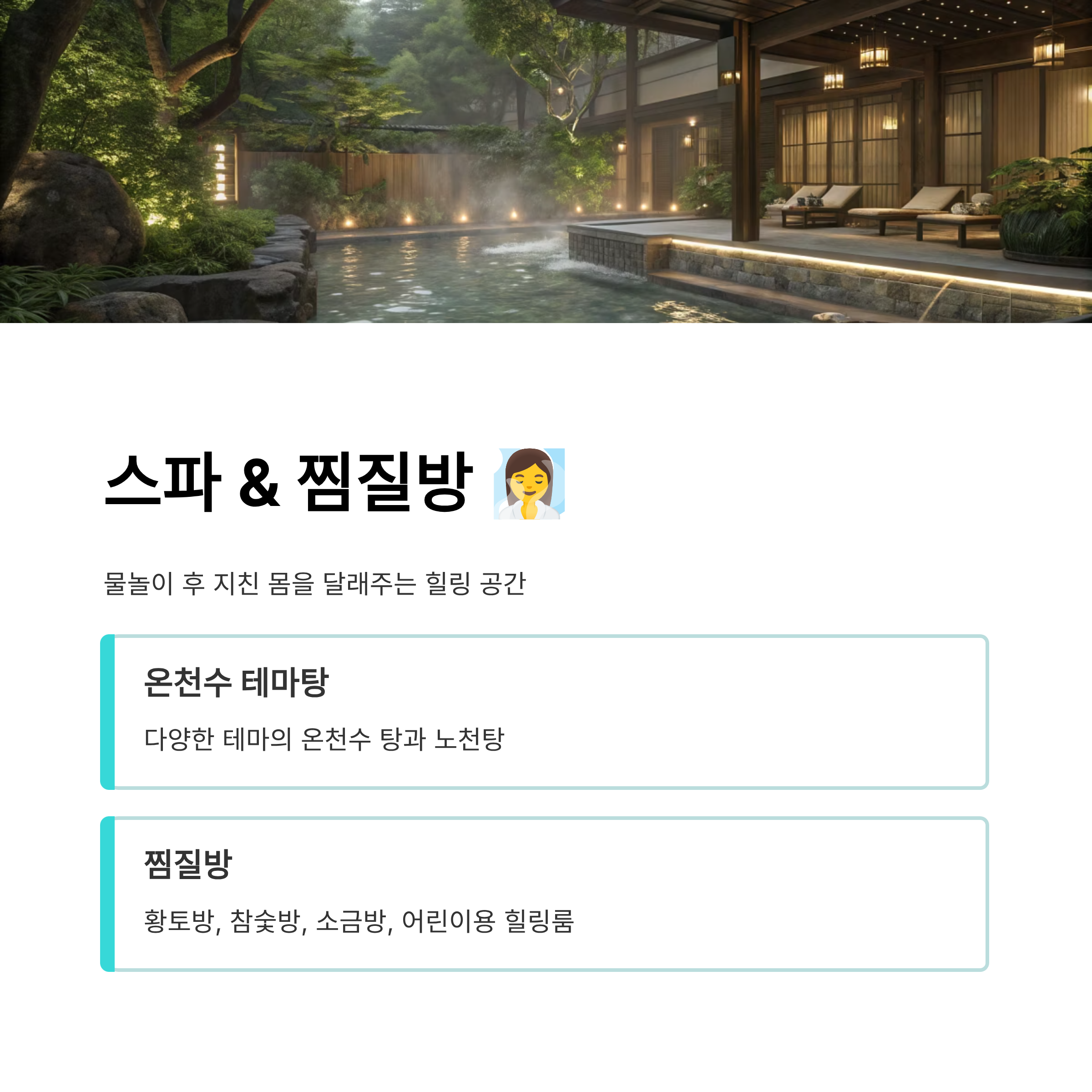 물놀이 후 지친 몸을 달래줄 수 있는 스파 시설은