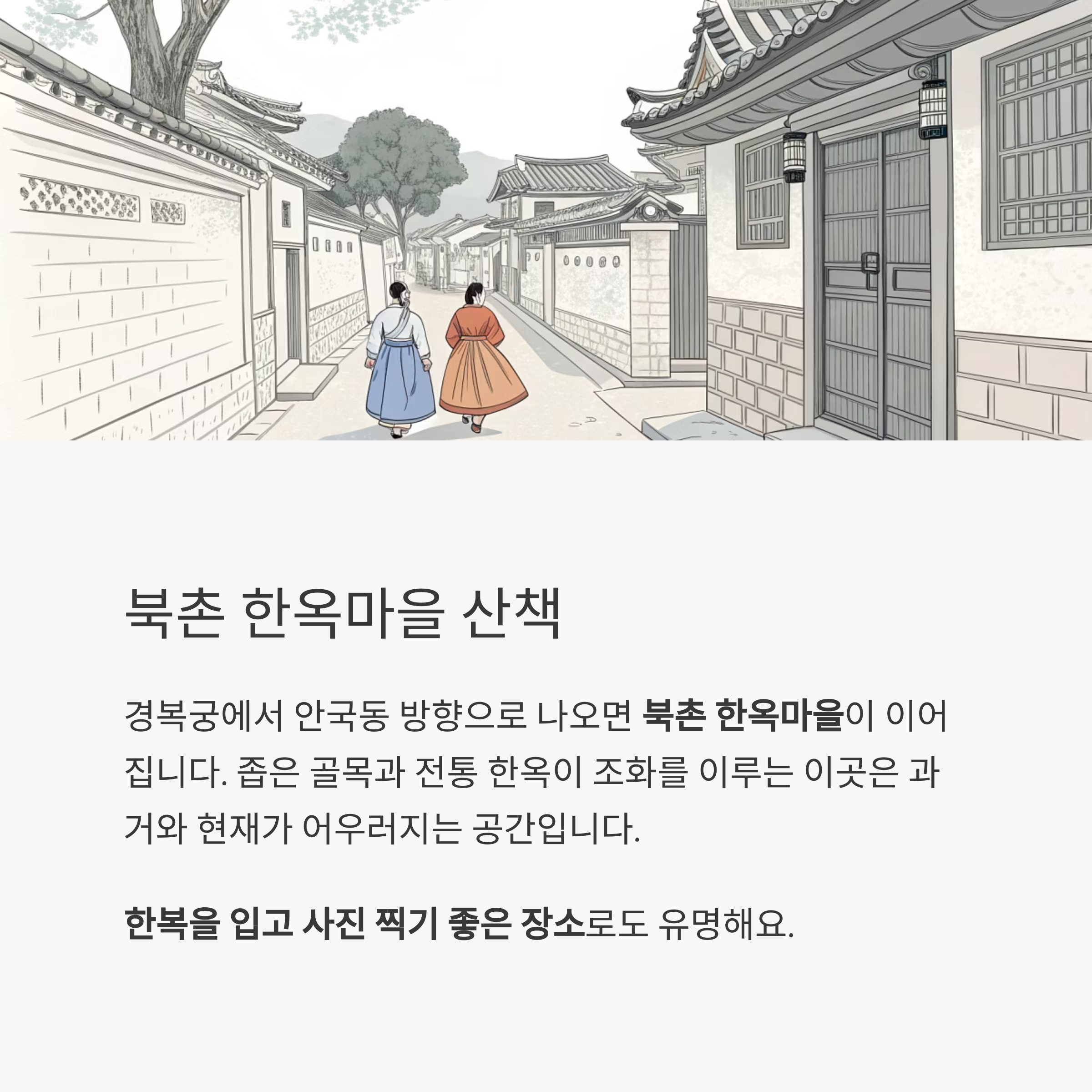 좁은 골목과 전통 한옥이 조화를 이루는 이곳은