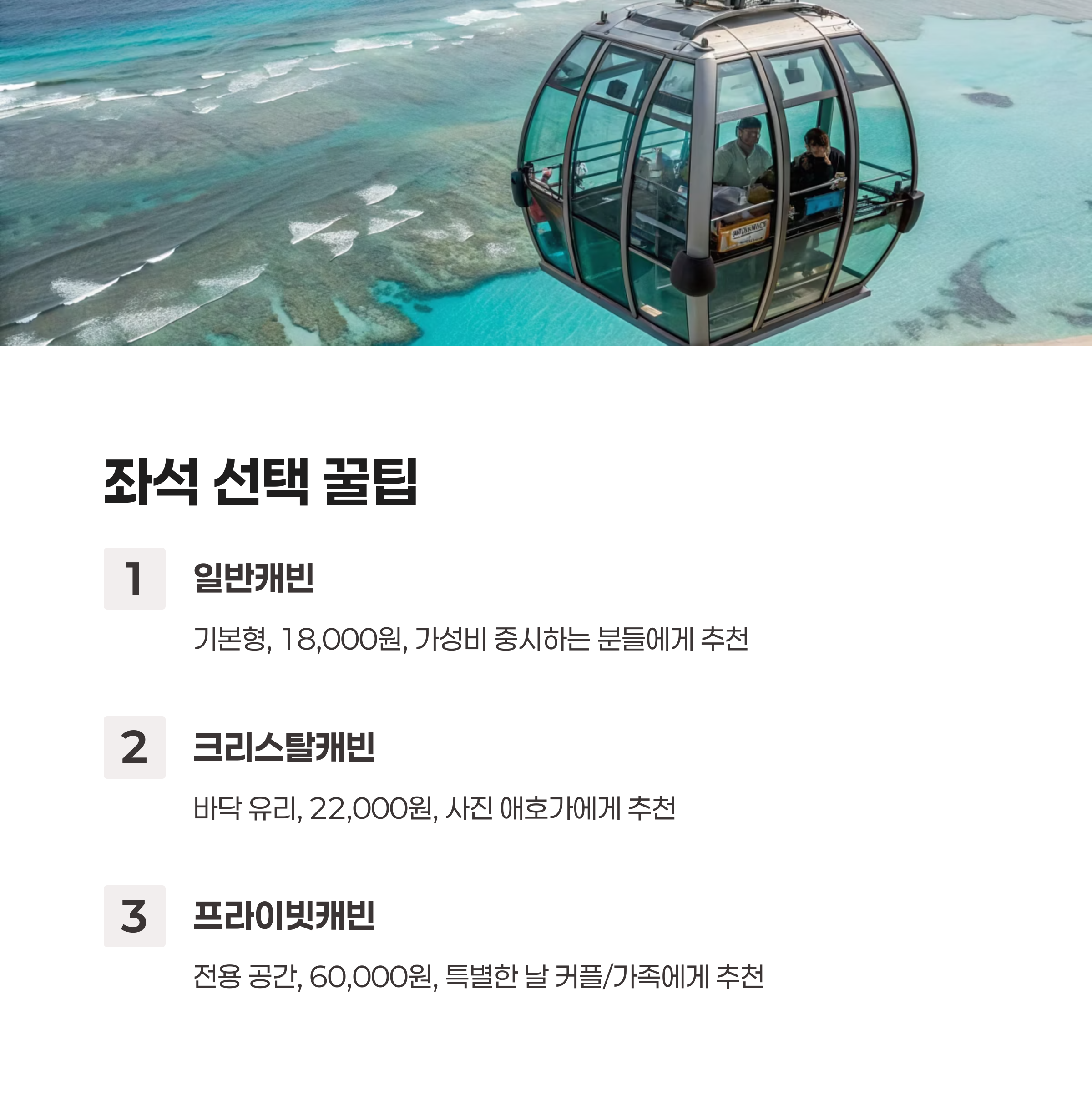 | 일반캐빈 | 기본형, 유리바닥 없음 | 18,000원 | 가성비 중시 |