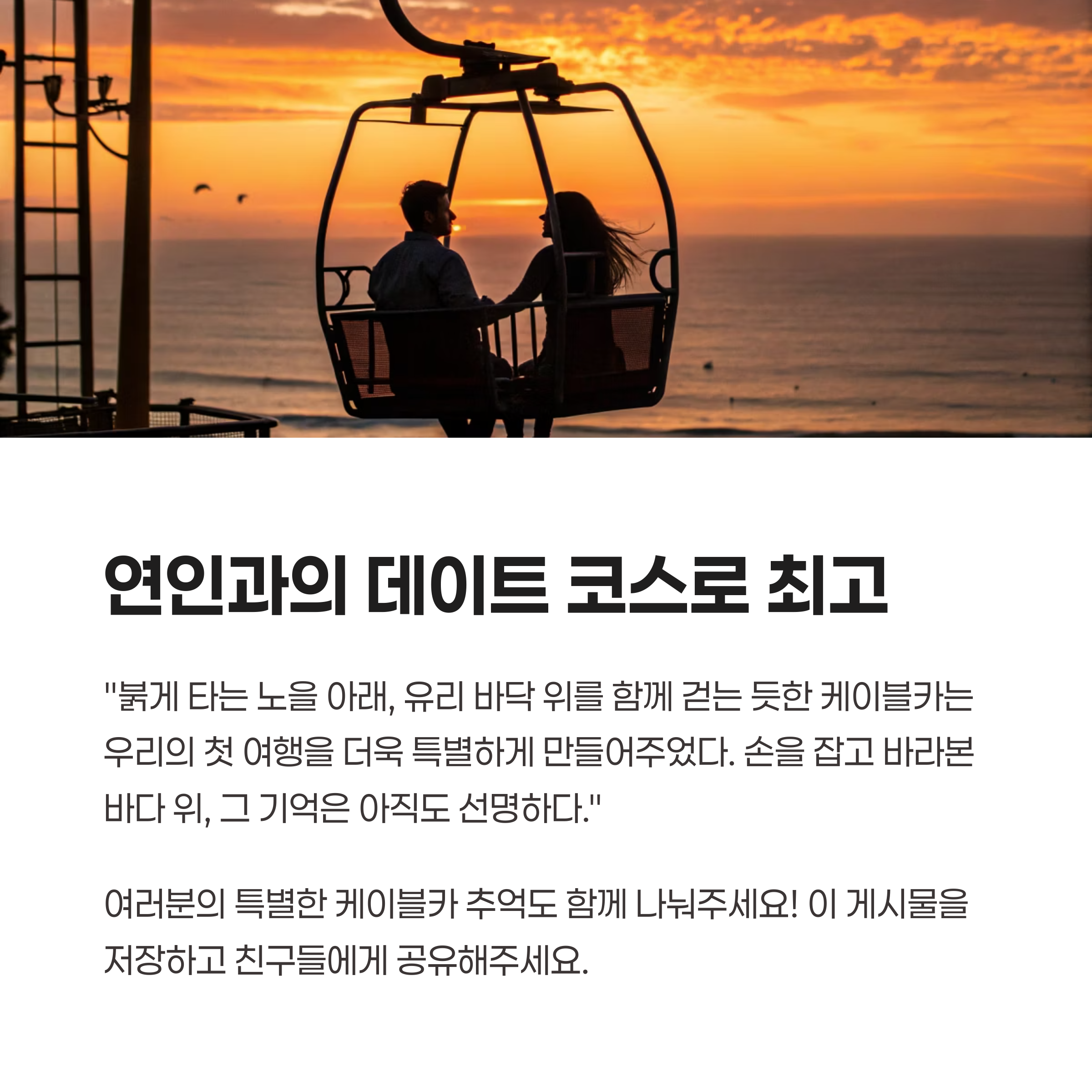 케이블카 위에서 붉게 물드는 바다를 바라보는 순간은 놓치기 아깝습니다.