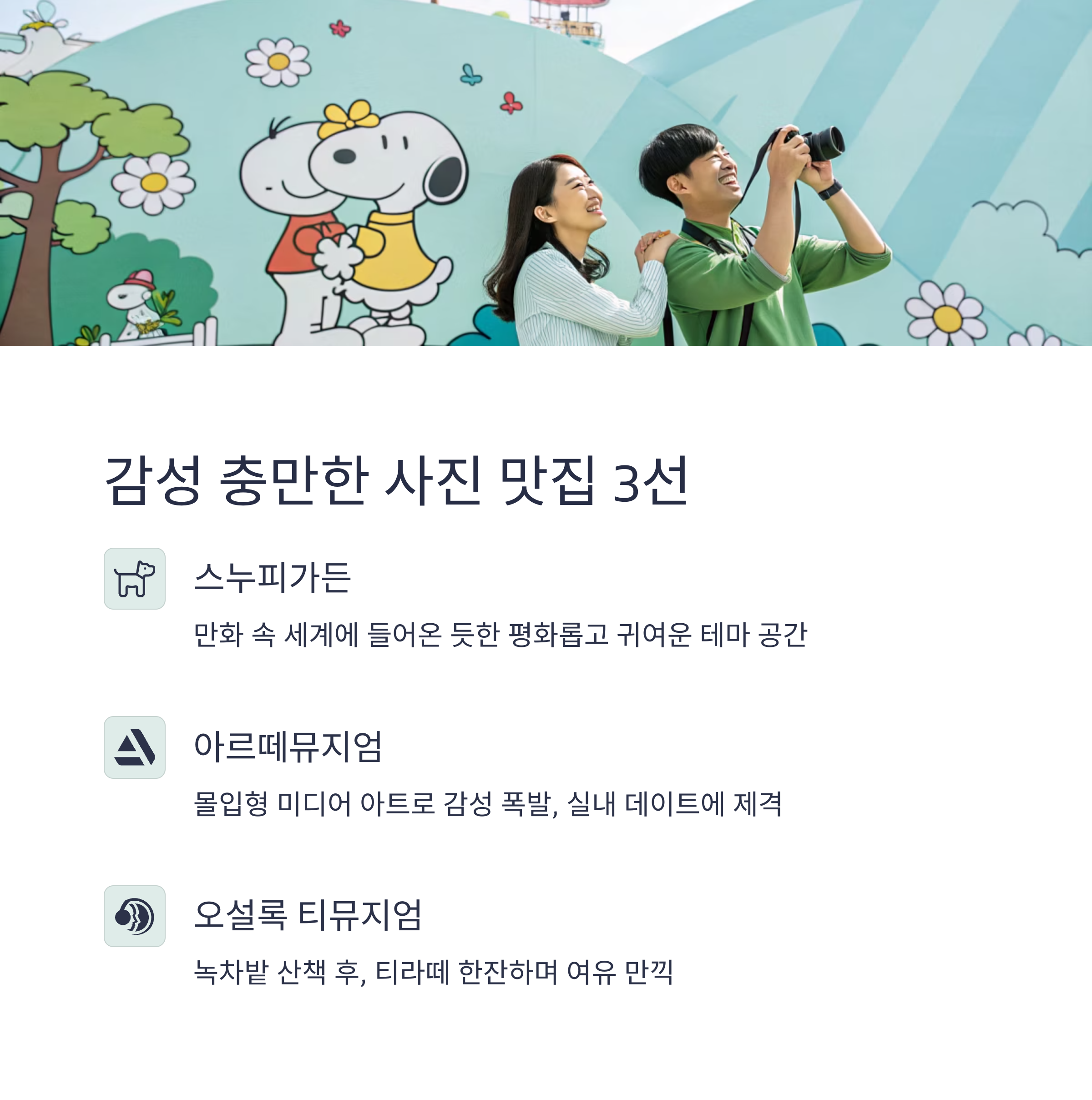 - 스누피가든: 만화 속 세계에 들어온 듯한 평화롭고 귀여운 테마 공간