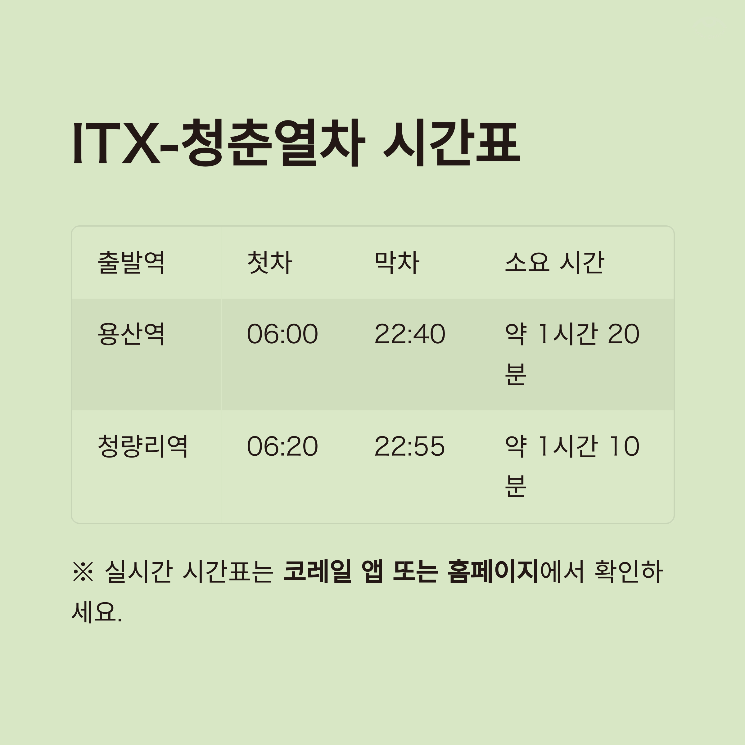 ※ 실시간 시간표는 코레일 앱 또는 홈페이지에서 확인하는 것이 가장 정확합니다.
