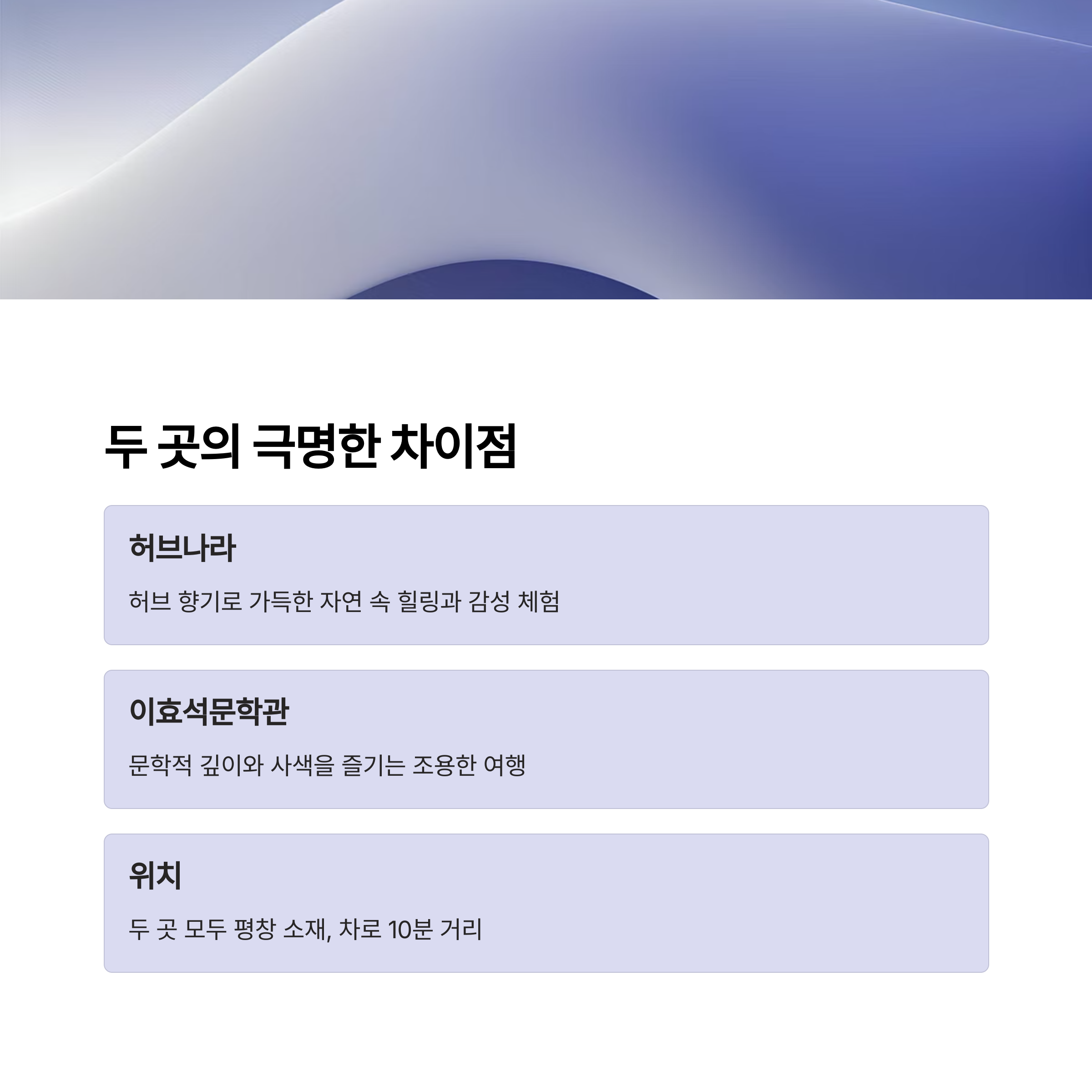 평창 허브나라와 이효석문학관은 서로 다른 매력을 지닌 대표 명소입니다.