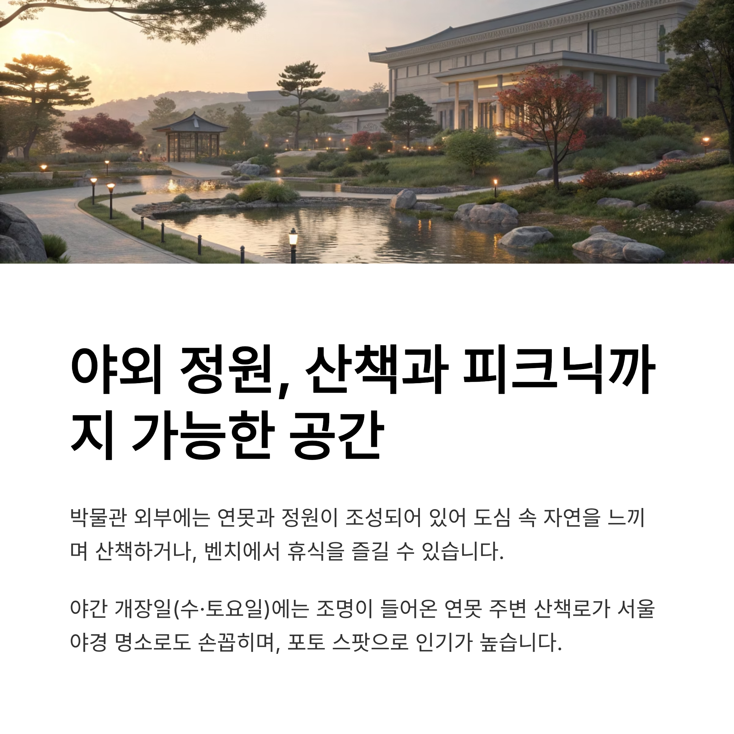 - 야간 개장일에는 조용한 분위기에서 관람 가능