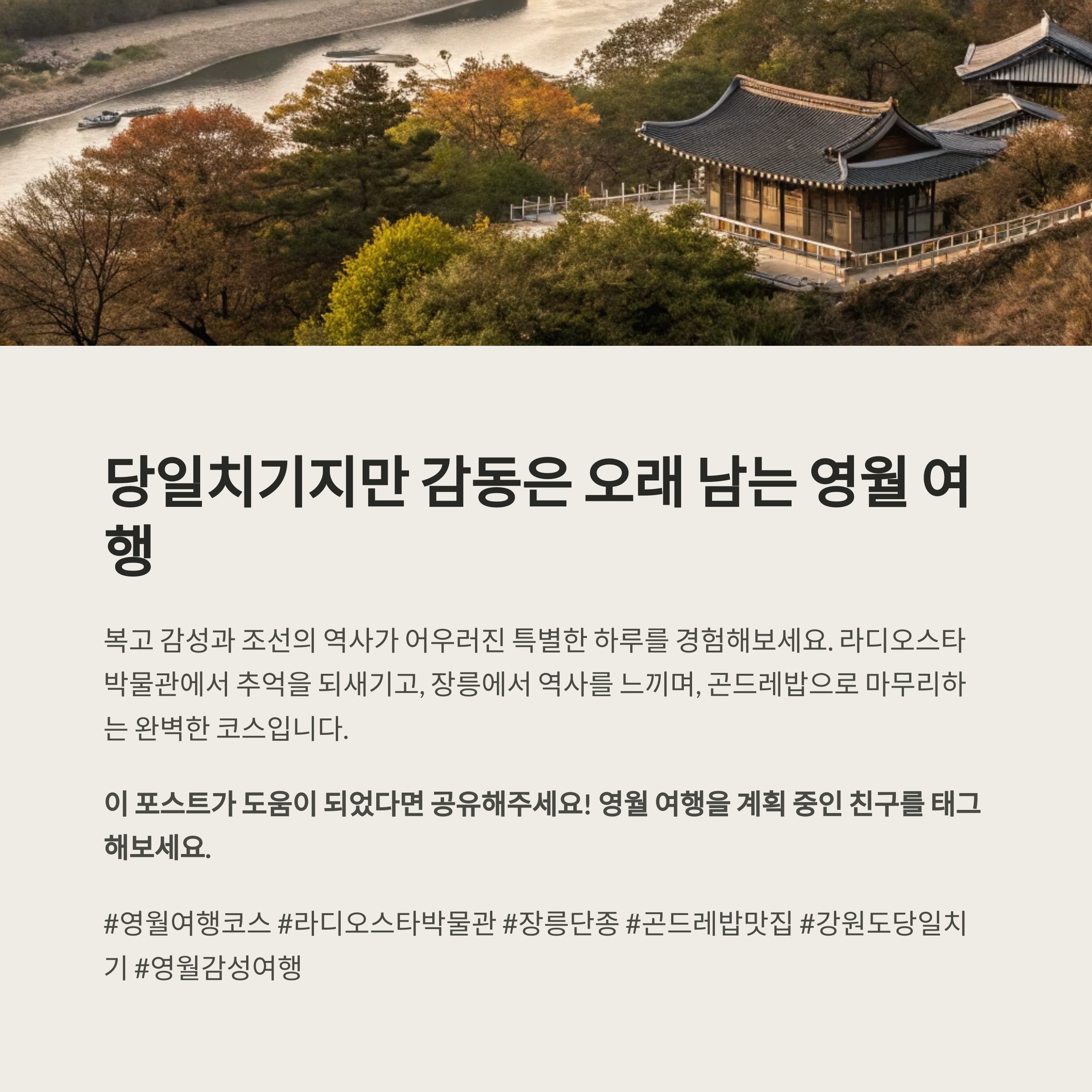 당일치기지만 감동은 오래 남는 강원도 영월 여행, 지금 떠나보세요