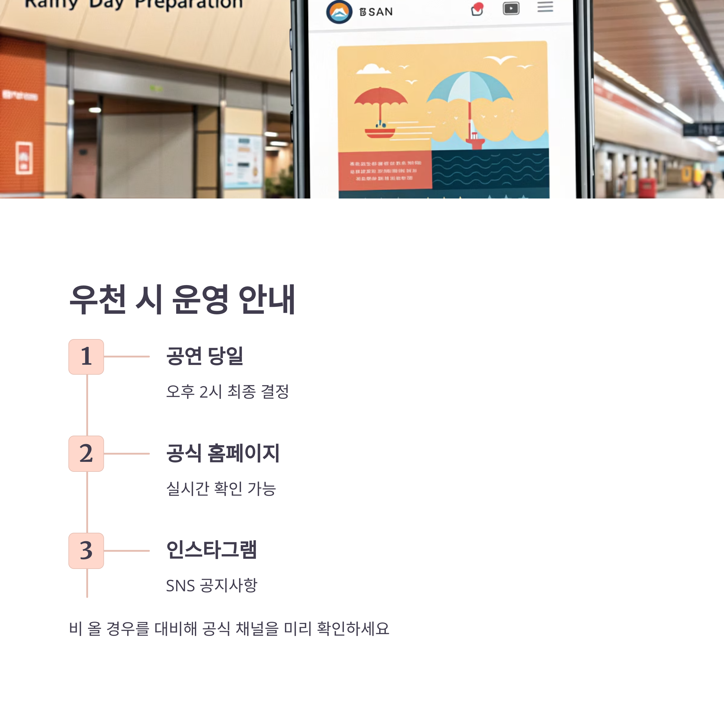 우천 시에는 공연 당일 오후 2시에 최종 여부가 결정됩니다